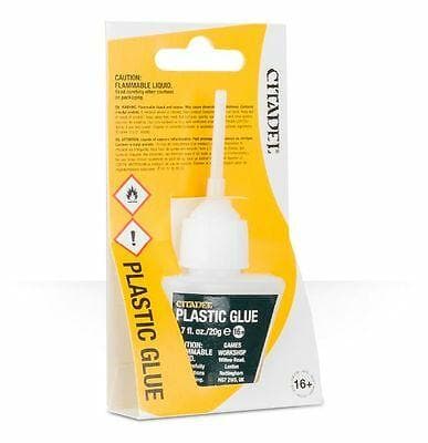 Citadel Plastic Glue, kas ir īpaši izstrādāta plastmasas Citadel miniatūru montāžai, ir pudelītē ar parocīgu aplikatora uzgali, padarot modeļu salikšanu daudz vienkāršāku.