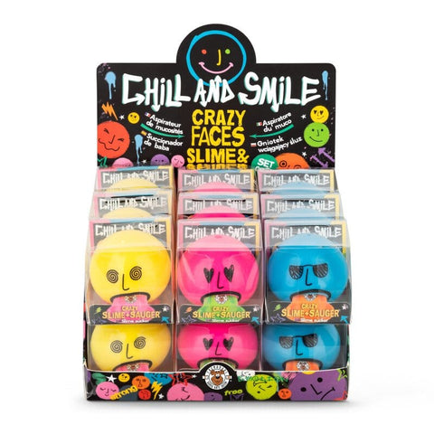 Slaima strēbējs! Jautra saspiežama rotaļlieta, kas apvieno antistresa bumbiņu un rotaļāšanos ar slaimu! Bumbiņa veidota, kā sejiņa, kas var iesūkt un tad atkal izspļaut slaimu.