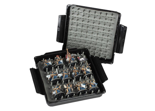 The parts holder has 44 part holders made of the same plastic as the Citadel miniatures, so you can easily glue small pieces like heads and weapons onto them for comfort when painting, then cut and glue them to the model. They also have two grooved bases that work perfectly with Citadel Color painting handles.