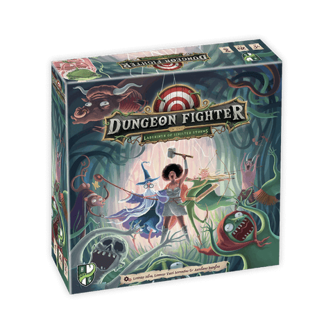 In a maze of dangerous storms, our group of strange heroes are stuck in a dangerous jungle, trying to survive the natural turmoil of this prison! With a classic d6 die and an almost familiar target board, this is the perfect start for Dungeon Fighter beginners!