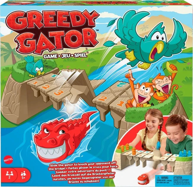 The children's game Edible Crocodile is a blast of fun as players race to get their figures across the bridge to the other side of the river. But watch out for the sneaky crocodile, who's ready to knock them down before they can get there!