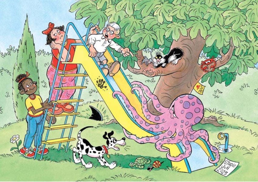 High-quality puzzle with a cartoon image by artist Jan van Haasteren!