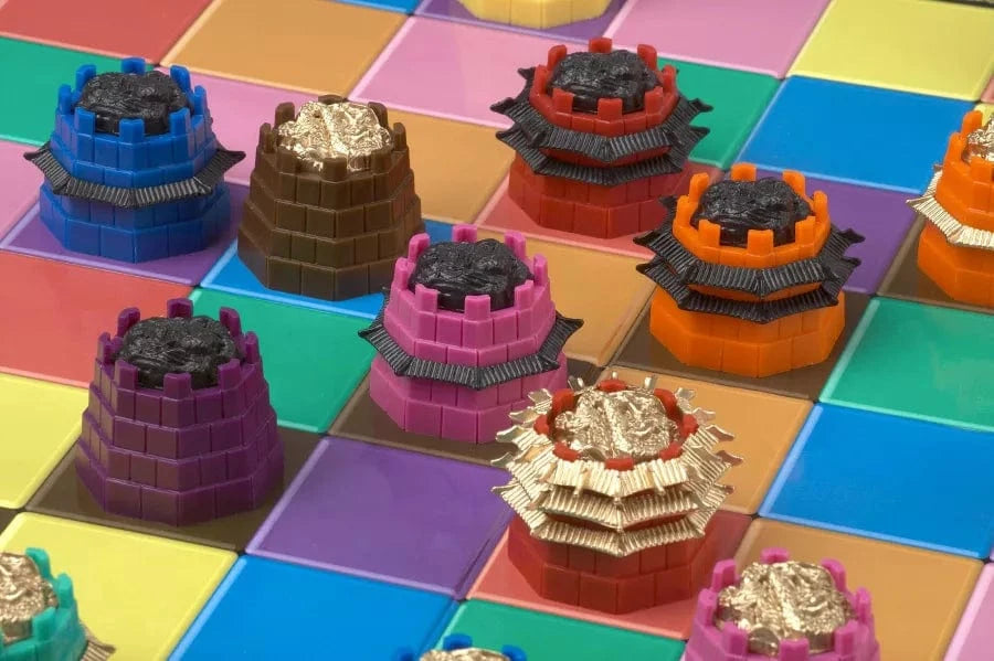 There are no dice, cards, or other elements of luck. It's just you and your opponent! The goal of each round is to be the first to get your tower to the opposite side of the square. It sounds simple, but you can only move a tower if its color matches the color of the square your opponent last moved to. The situations continue to get more complex and challenging until one player reaches the opponent's baseline.