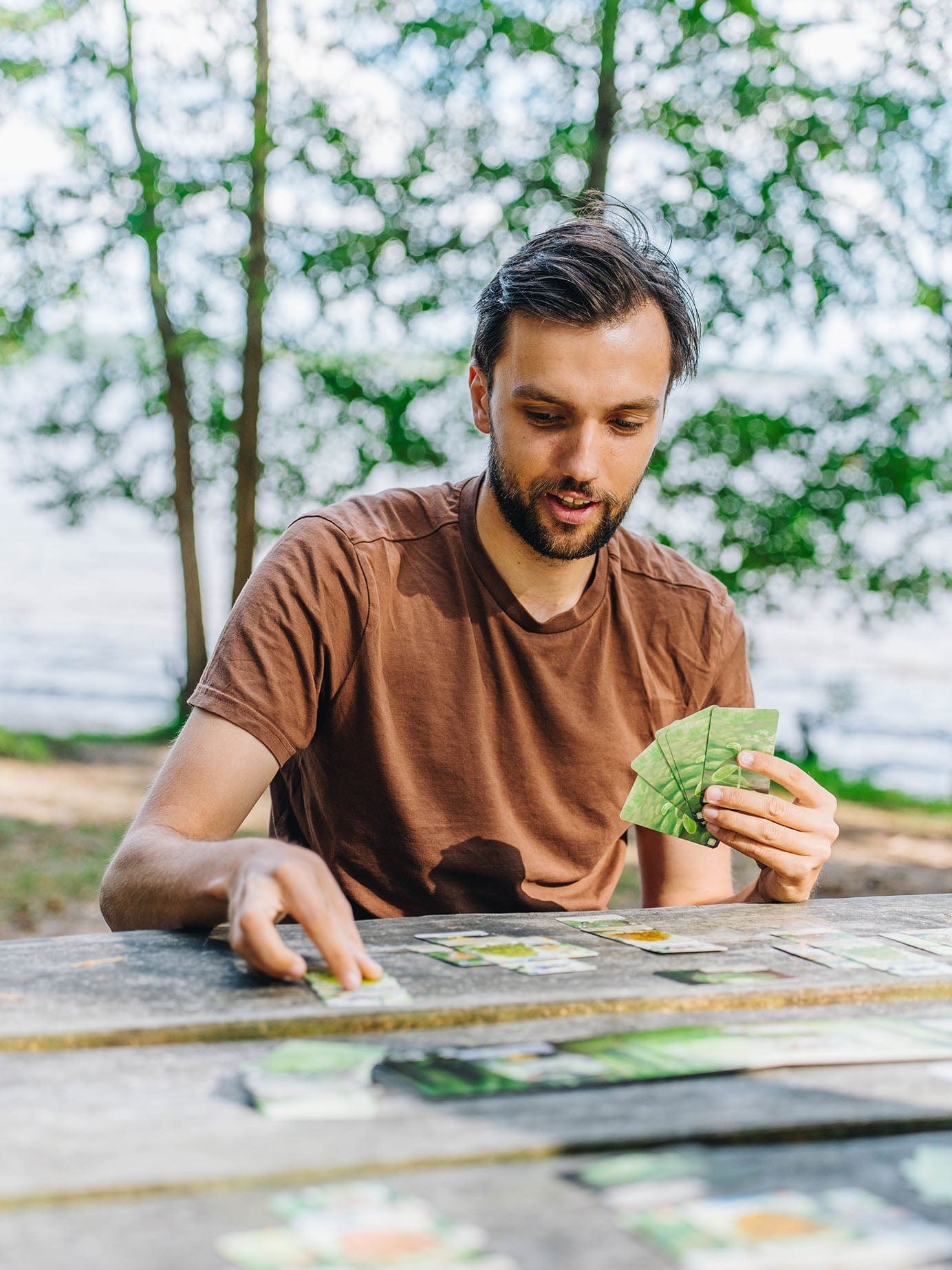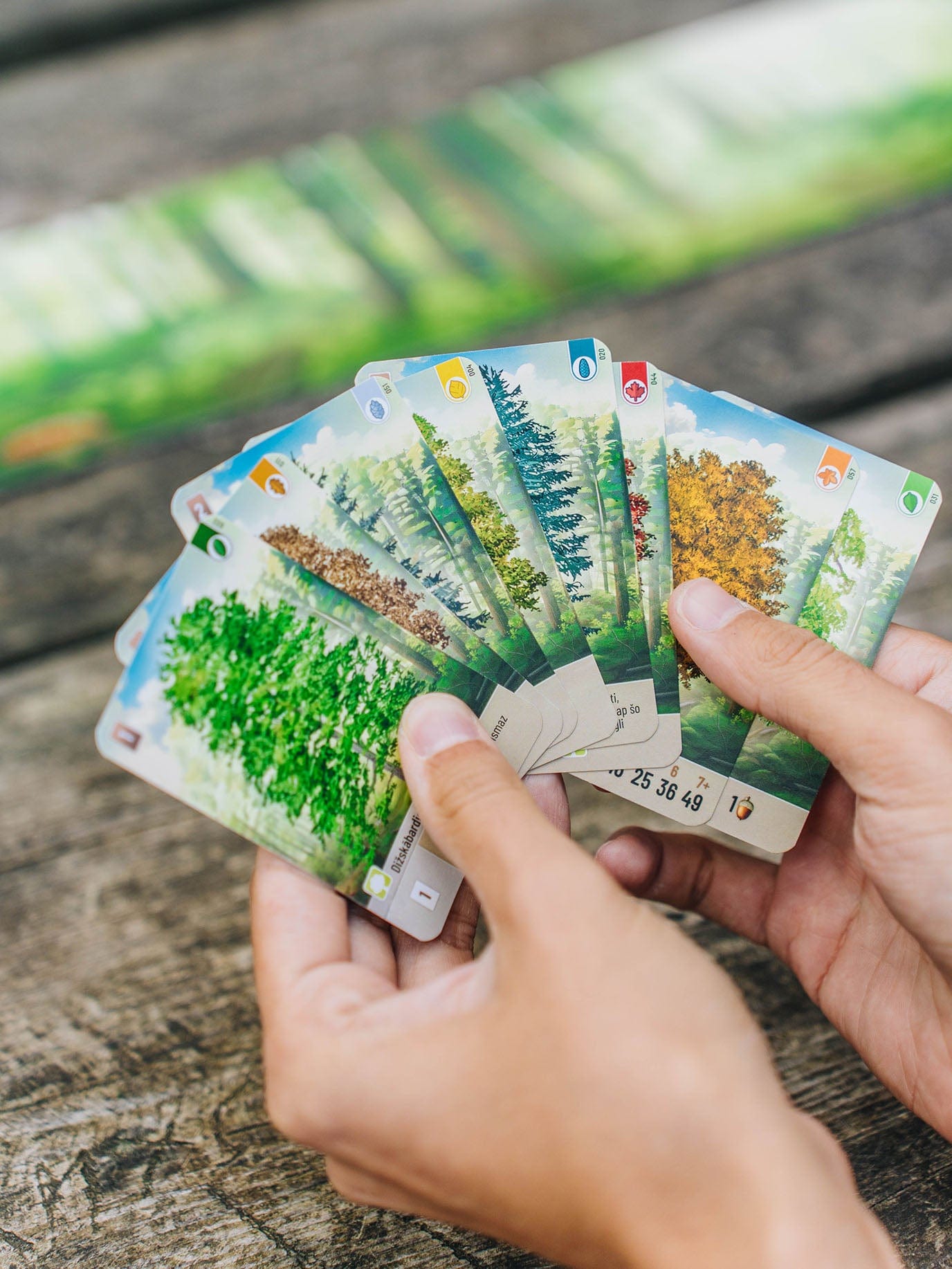 It all starts with one tree. Each turn, players play cards from their hands, each aiming to get as many trees as possible in their forest. To attract nature's inhabitants, players must combine plants and animals for extra points or actions. Players should take into account the different preferences of these creatures - some animals are comfortable only with their own species, others like a certain type of tree to live in, etc. At the end of the game, the player with the most points from his trees, animals and plants wins.