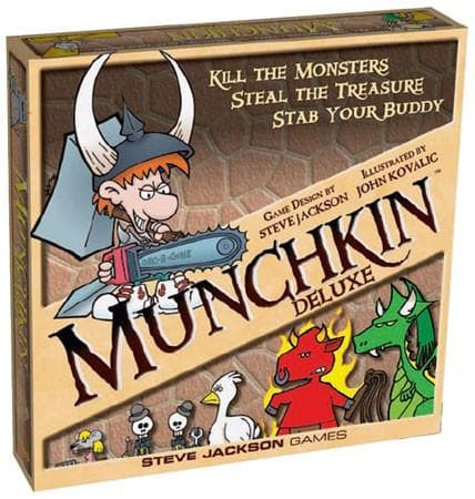 "Munchkin Deluxe" exclusive version of the board game "Munchkin". "Munchkin" is a funny board game for parties and celebrations. This game slightly parodies and ironizes other board games, movies, popular cartoons, fairy tale characters and other adventures . Go to underground fortresses, fight with everyone you meet, "cut" your friend and steal his accessories, grab treasures and MOO - admit it, you like it!
