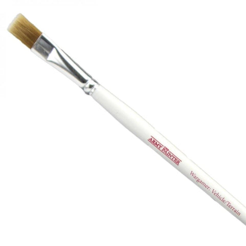 A brush for painting mechanical devices with a hard and flat bristle tip. The brush is perfect for highlighting the edges and using the "dry brushing" technique.