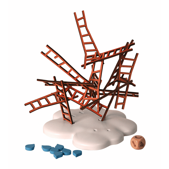 Kāp cauri mākoņiem un sniedzies pēc mēness! Viss, kas nepieciešams, ir dažas gudri novietotas kāpnes, stabila roka un mazliet iztēles. Sniedziet roku pēc mēness, bet neizstiepieties pārāk tālu, pretējā gadījumā varat pazaudēt kāpnes zem kājām. Ar pareizo spriedzes un riska uzņemšanās sajaukumu jūs gūsit panākumus. Šajā veiklības/kraušanas spēlē ar neierastu tēmu un skaistu dizainu spēlētāji pārmaiņus met kauliņu, lai noteiktu, kā viņiem jānovieto koka kāpnes (tām ir jāpieskaras citām kāpnēm, divām citām kāpnēm vai jābūt augstākajam punktam.) Kāpnes sāks gāzties, pievienojot vairāk gabalu, pastiprinot spriedzes un neparedzamības elementu.Lietus lāses tiek dotas spēlētājiem, kuru kāpnes izraisa struktūras sabrukšanu; uzvarētājs ir spēlētājs, kuram spēles beigās ir vismazāk lietus lāses!