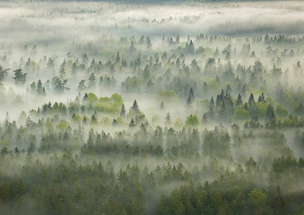 Gaujas Nacionālais parks, Latvija. Fotogrāfija uzņemta agrā rītā no gaisa balona.