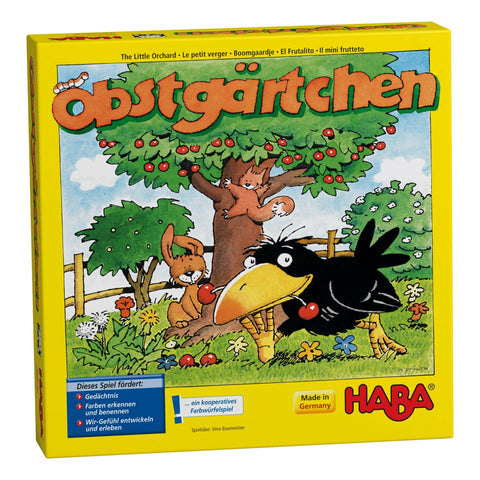 "The Little Orchard" ir komandas spēle, kurā bērni mācās sadarboties, lai paspētu ievākt ķiršus pirms vārnas. Komplektā ietilpts 3D ķiršu koks.